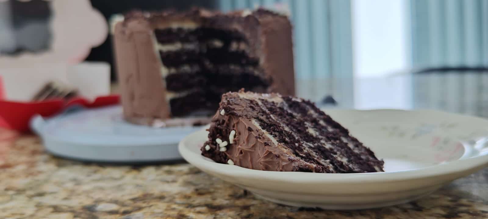 Delicioso pastel de Chocolate Doble, con ganache de maple entre cada capa