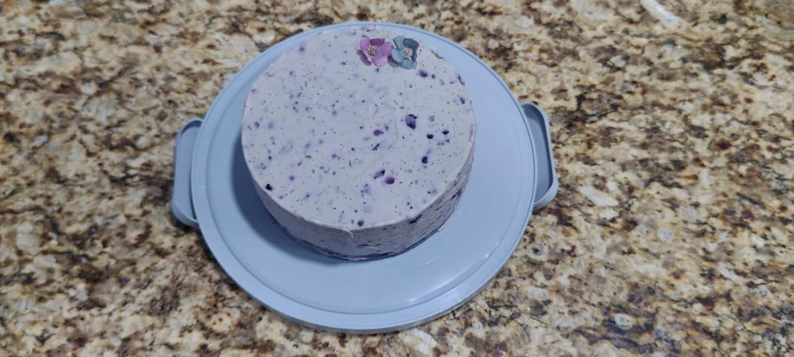 Delicioso pastel de Arándano Doble Elaborado con Harina de Espelta Integral, cubierto con Ganache de Arándano en chocolate blanco (6 pulgadas de diámetro) Disfrútalo en sus variedades; con y sin azúcar, con o sin gluten.