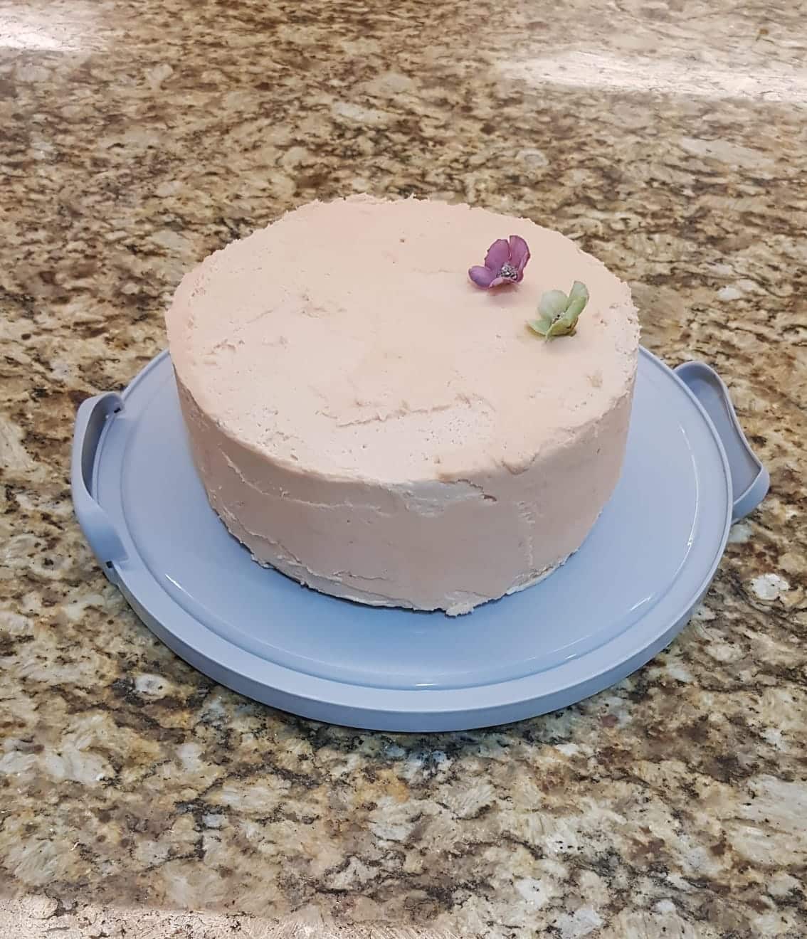 Delicioso pastel de Arándano Doble Elaborado con Harina de Espelta Integral, cubierto con Ganache de Arándano en chocolate blanco (6 pulgadas de diámetro) Disfrútalo en sus variedades; con y sin azúcar, con o sin gluten.