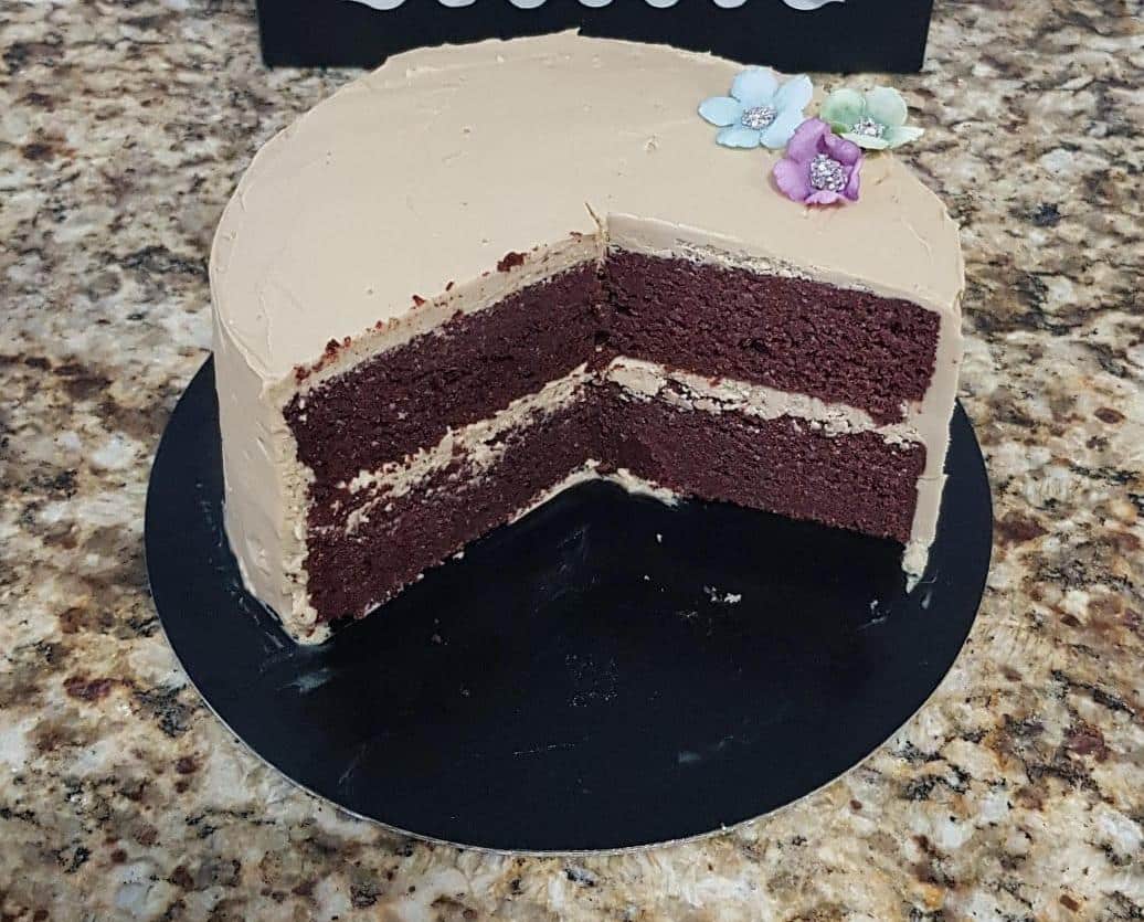 Delicioso Pastel elaborado con harina de Espelta Integral, cubierto con betun de Chocolate (6 pulgadas de diámetro) Disfrútalo en sus variedades; con y sin azúcar, con o sin gluten